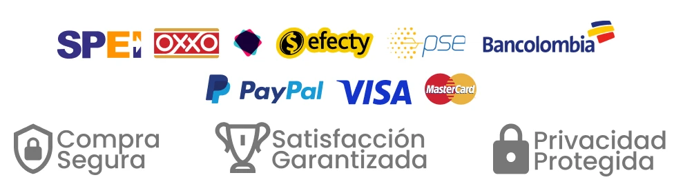 – PayPal, Transferencia bancaria (Brasil, Colombia, México, Unión Europea y Reino Unido)